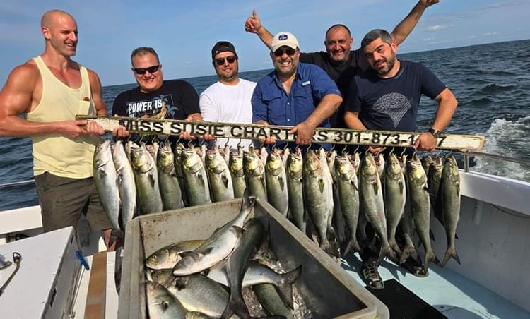 Miss Susie Charters is landing big bluefish daily out of Solomons, Md.
