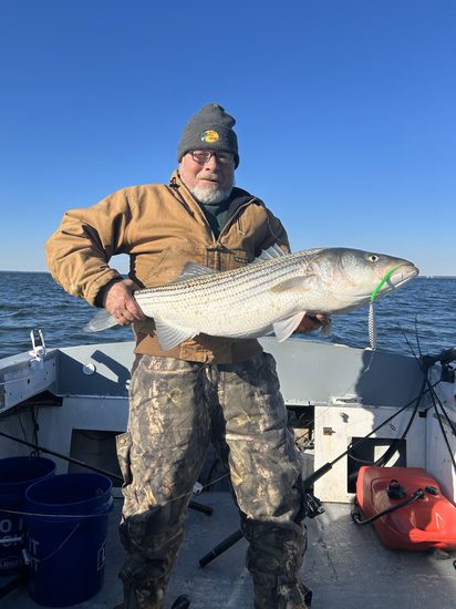 Update on 12/23/2024: Brian Williamson jigged up this 42 inch rockfish (safely released) on a Run Off jig. Big fish and about a dozen slot stripers were hitting fast and furious just south of Ragged Point in the Potomac.