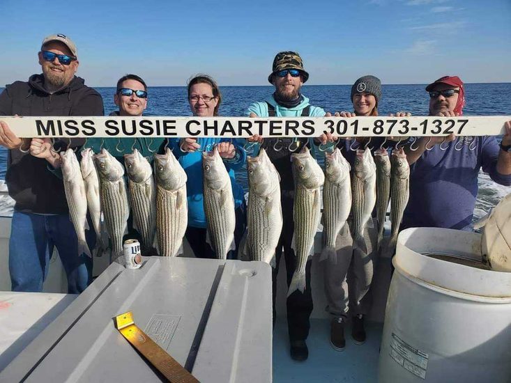 Main Image: Big stripers are here. This one was caught live-lining a spot bait fish on Capt. Greg Buckner's "Miss Susie" last Saturday.