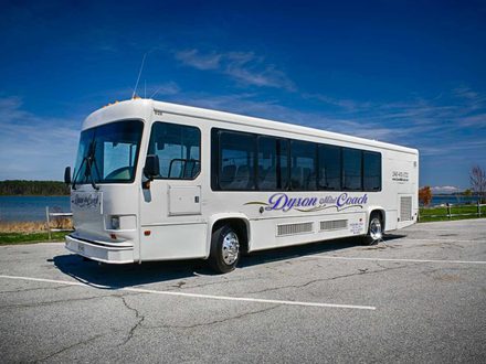 Dyson Mini Coach is a top transportation provider in Southern Maryland, with a 28-passenger Mini Motor Coach Bus. They are the ideal mode of transportation for small groups of up to 28 people attending weddings, bridal and bachelor parties, and celebrations. This bus's features include: overhead and rear compartment storage, individually controlled air and heat vents, individual reclining seats and reading lamps, clean restroom, tinted windows, US DOT Inspected, licensed and insured, and Maryland State Certified.