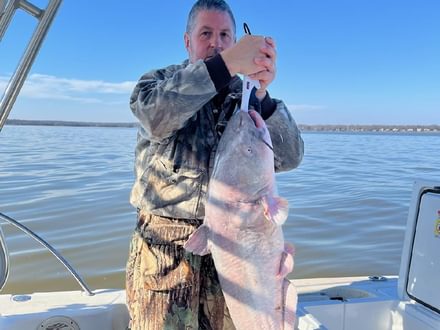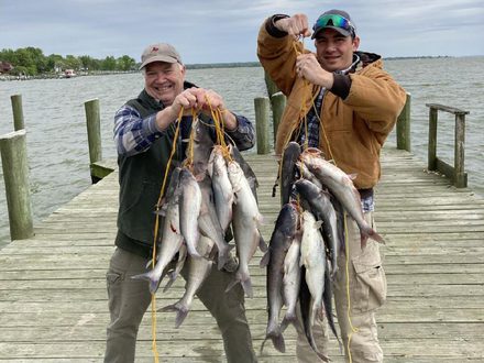 Blue catfish are in the Potomac and Patuxent hitting cut alewife from both the shore and from boats.
