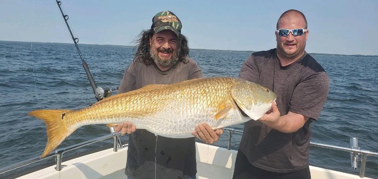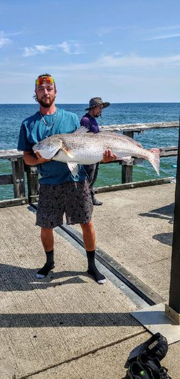 Kyle Gould landed this big redfish off the Point Lookout Pier with a little help from his friends.