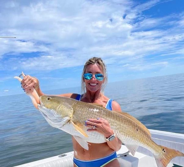 Tammy Caldwell with a big red that took a trooled eel lure.