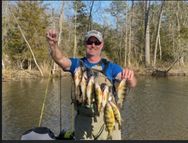 Gene Wright with an awesome string of Yellow Perch. Caught with some Tackle Box Live Minnows at Allen's Fresh Thursday. Nice fish Gene!