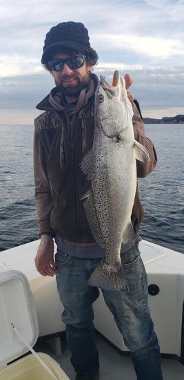Ryan Galligan caught this seven-pound speckled trout among rockfish at Cove Point on Monday, Dec. 4.