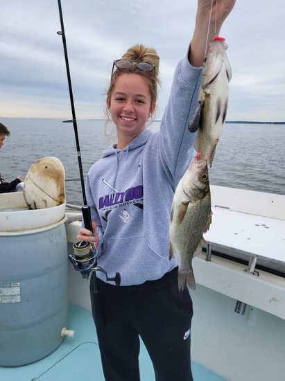 There are white perch are active and sometimes mixed with the spot. The big perch is a food fish second to none with firm white filets.
