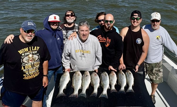 Captain Bernie Shea is catching fine stripers out of Tall Timbers, Md.