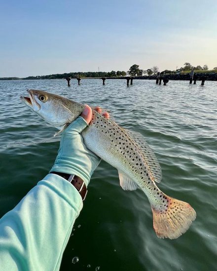 Red drum and speckled trout are in the shallows for lure casters. Puppy drum are in the creeks in the 8 to 12 inch size mixed with the excellent run of white perch. Redfish in the slot (18to 27 inches) are numerous. Bull reds or channel bass are schooled up to challenge your fishing gear in the 30 to 50 pound class in the mid-bay.