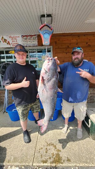 Allen and Anthony King landed this 56 pound, 44 inch blue catfish in the northern Patuxent on Sunday on cut bait.
