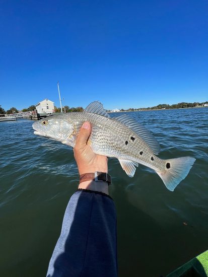 Puppy drum are still schooled up in the Patuxent and are eager to hit cast jigs. Remember, they must be 18 inches to keep; release gently.