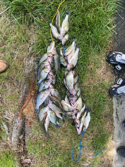 Capt. Bernie on the Shea-D-Lady Charter (301-672-3282) loaded up Sunday morning landing 450 fish before 9 AM. Capt. Gordy Thomas on the Miss Bobbie also out of Solomons has been getting all he can carry every day this past week. The hot weather has brought in these fish (officially, Norfolk Spot) in huge schools at Drum Point, Green Holly, Seven Gables, Hawk's nest, and most everywhere else in the mouth of the Patuxent River.