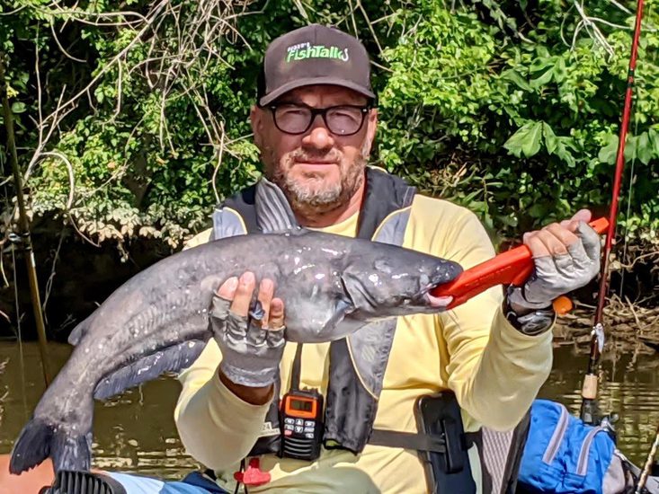 Left Image: Capt. Luke on the Rockstar landed bull reds casting HHCB lures into breaking fish this week. Right Image: Eric Packard with big cat that took a chatterbait in the upper Patuxent.