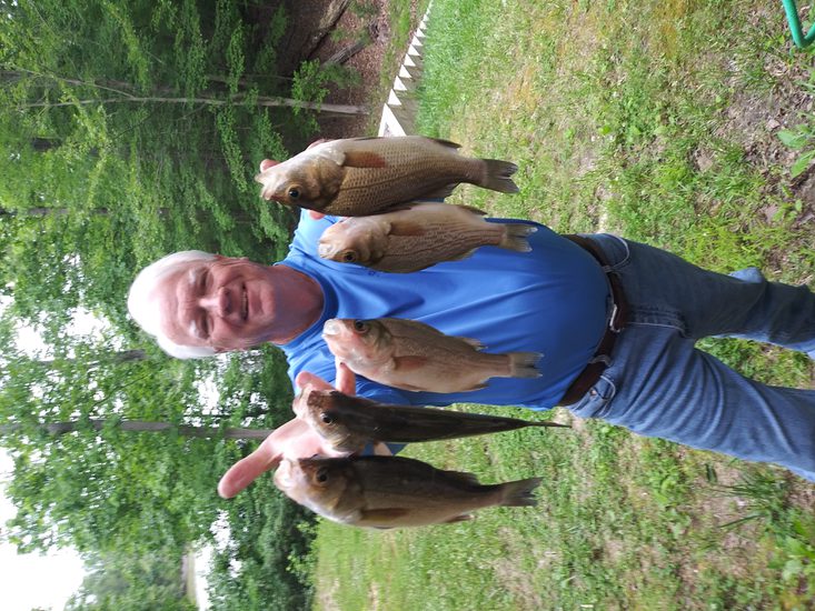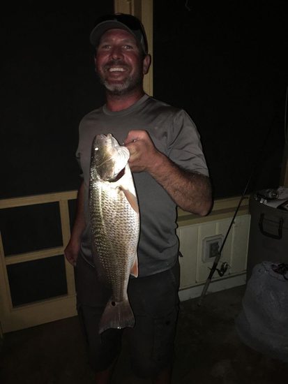 First Image: A redfish that took a Hard Head Custom Bait Rockfish Popper this week. Second Image: Ken Lamb with hands full of perch from a Patuxent Creek.