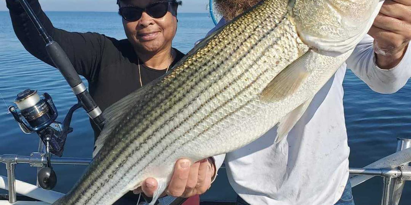 Main Image: Big stripers are here. This one was caught live-lining a spot bait fish on Capt. Greg Buckner's "Miss Susie" last Saturday.