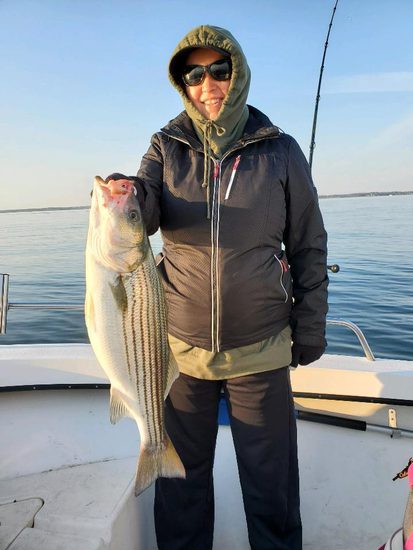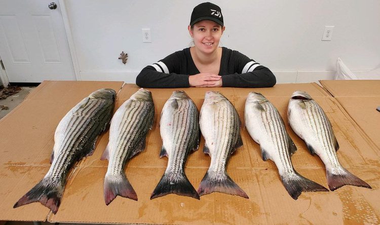 Heather Windsor with rockfish from Ragged Point in the Potomac.