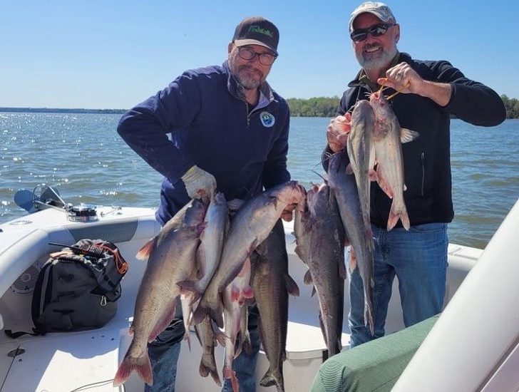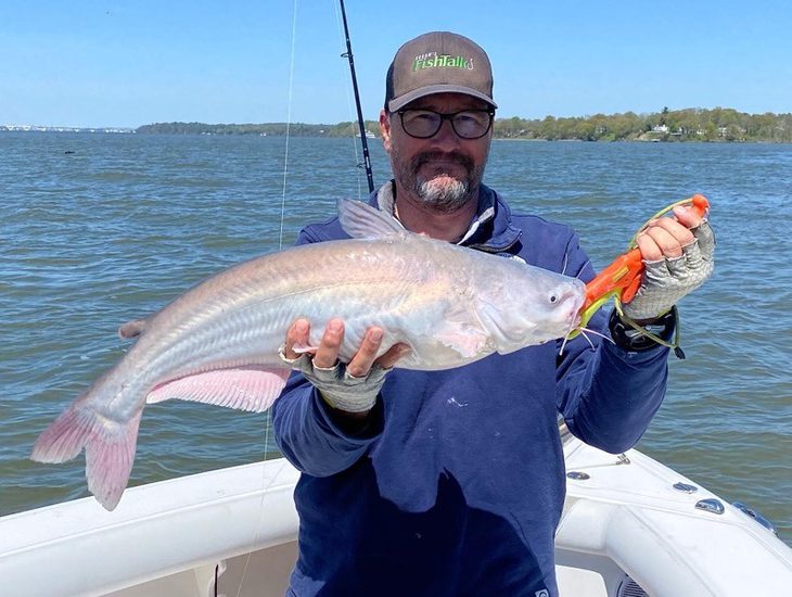 Eric with Potomac River Catfish. They are jumping in the boat!