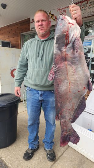 Justin Boszko landed this 43 inch, 49 pound blue catfish in the Potomac using cut bait.
