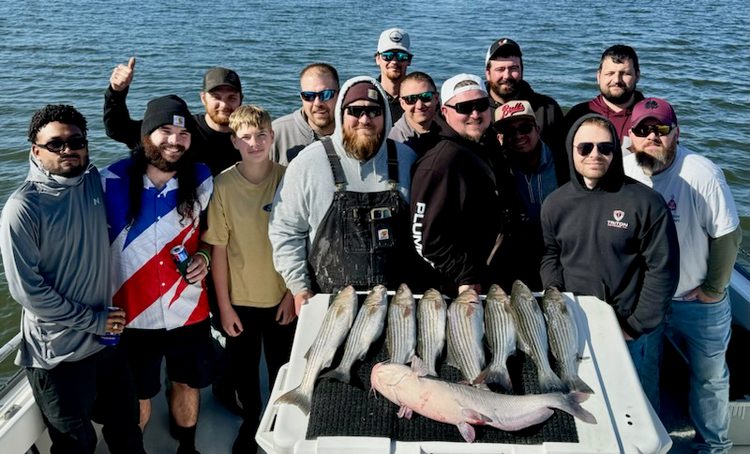 Capt. Bernie Shea on the Shea-D-Lady caught Rockfish and a big catfish while trolling up the Patuxent, Sunday November 3.