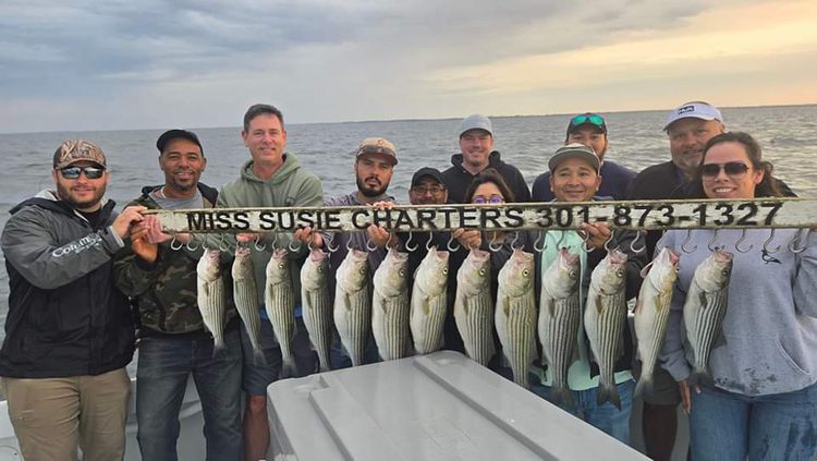 Miss Susie Charters out of Pasadena, MD., is live lining rockfish daily. Plenty of white perch after striper quota is filled.
